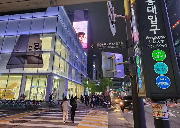 Το Hongdae Station, Exit 2 Διαμέρισμα διαθέτει εξοπλισμένη μικρή κουζίνα, και είναι ιδανική επιλογή για τους επισκέπτες που επιθυμούν να μαγειρεύουν τα γεύματά τους. Το Hongdae Station, Exit 2 Διαμέρισμα 100 τ.μ. Απέχει μόνο 550 μέτρα από τον σταθμό του μετρό Hongik Univ και περίπου 5 λεπτά με τα πόδια από τη στάση λεωφορείων Cheonggiwa Wedding Hall.
